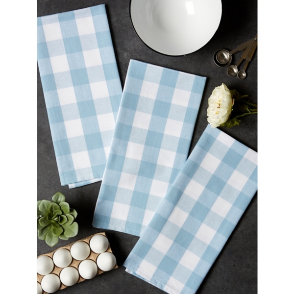 Light Blue Buffalo Check Kitchen Towels Set Of 3 Kirklands