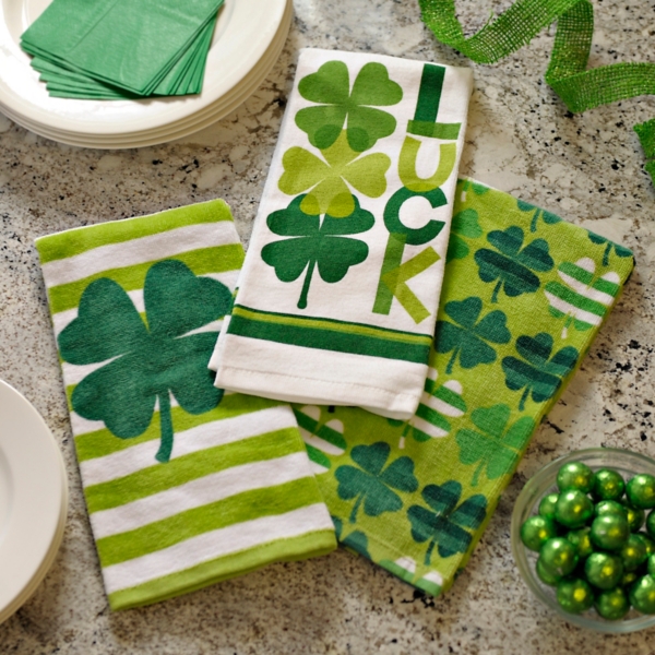 Decor that remind you how much fun you have hanging out in the kitchen. Go green in the kitchen with these festive shamrock kitchen towels from Celebrate St. Patricks Day Gift Farmhouse St.