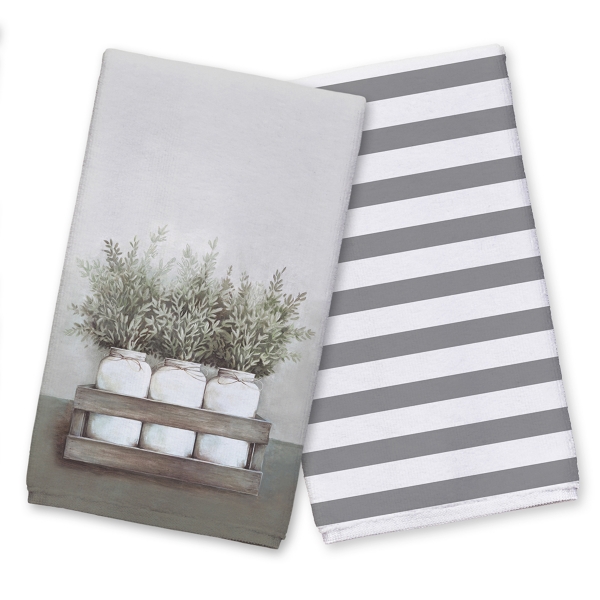 Gray Stripe Mason Jar Kitchen Towels Set Of 2 Kirklands