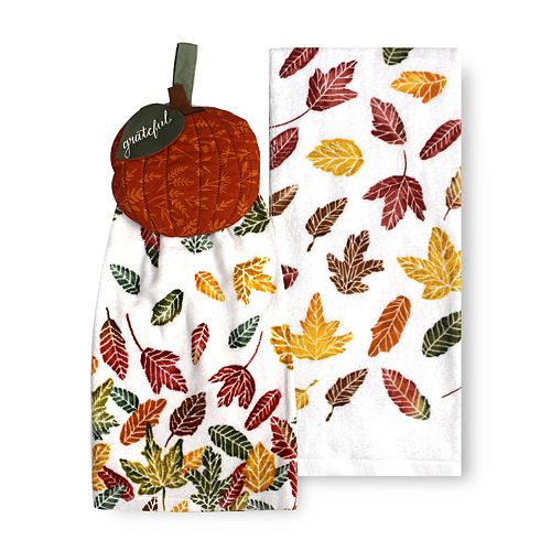 Set Of 2 Kitchen Towels Fall Autumn Pumpkins Leaves Pattern Seasonal Kohl S Kitchen Dining Linens Textiles Rateshop Home Garden