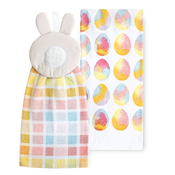 Celebrate Easter Together Bunny Tail Tie Top Kitchen Towel 2 Pk