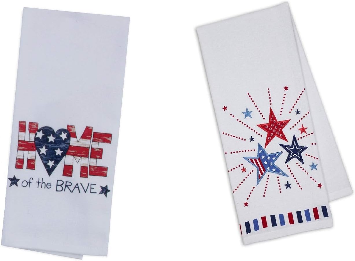 Patriotic Kitchen Dish Towels Set Of 2 America The Beautiful Red White Blue New