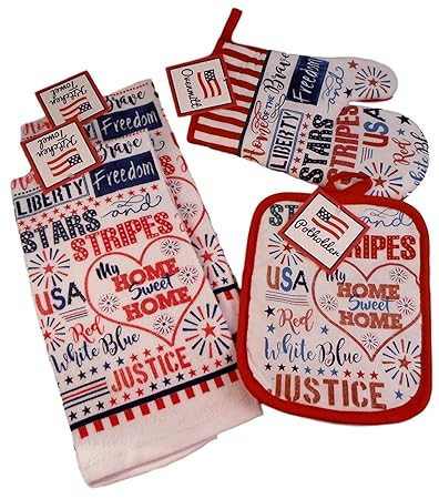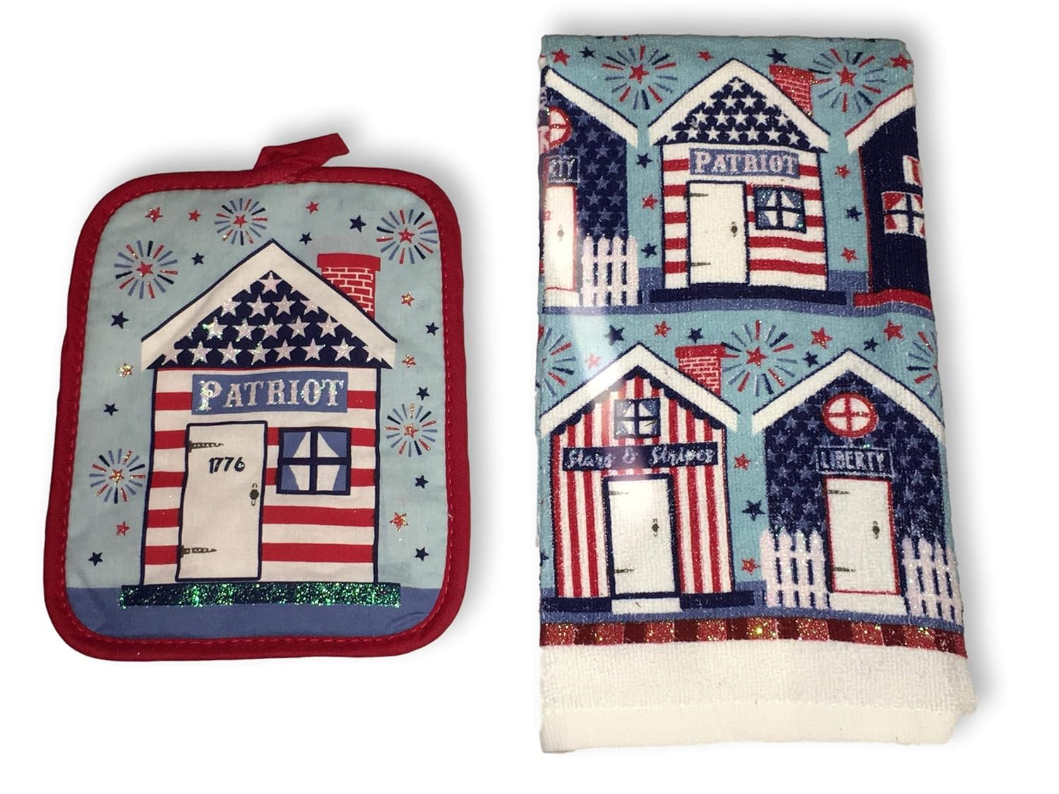 Plum Nellies Treasures Patriotic Kitchen Towels Potholder Sets Patriotic Land That I Love Flag Design 1 Kitchen Towel 1 Potholder Patriotic Kitchen Decor 1 Kitchen Towel 1 Potholder Kitchen