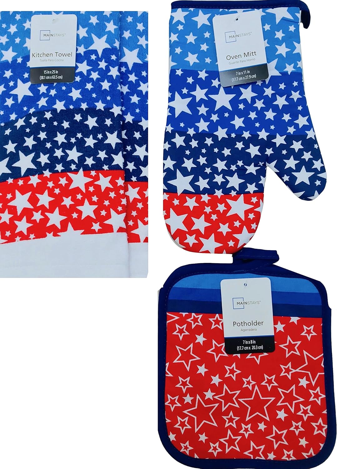 Mainstay Patriotic Owl 1 Theme Kitchen Set 2 Towels 1 Oven Mitt 3 Piece Set Kitchen Dining Linens Textiles Home Garden