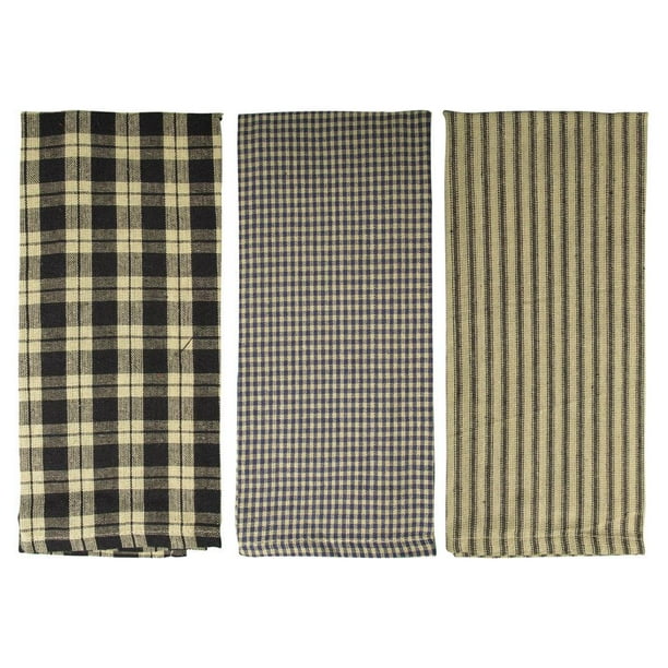 Farmhouse Kitchen Towels Black Natural Tan Striped Buffalo Checked Plaid Dish Towels 3 Kitchen Towels Walmart Com Walmart Com