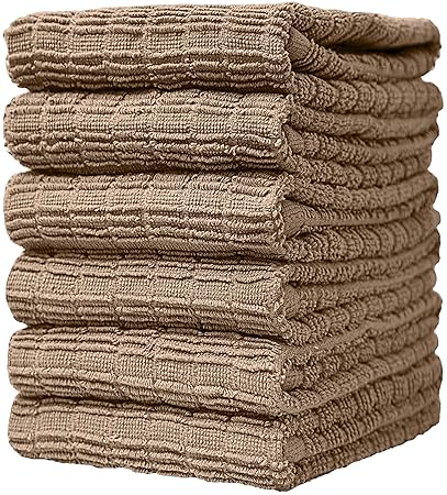 Kitchen Towels 16 X 28 6 Pack Large Cotton Kitchen Hand Towels Ribbed Check Design 380 Gsm Highly Absorbent Tea Towels Set With Hanging Loop Tan Amazon In Home Kitchen