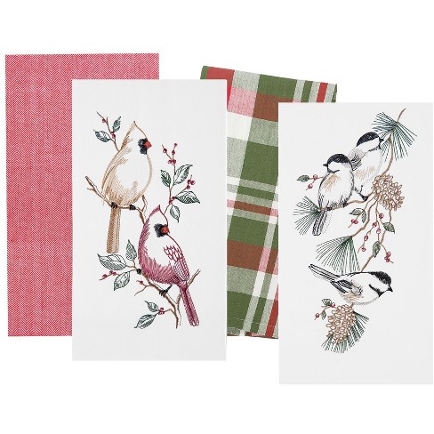 C F Home Christmas Birds Cardinal And Chickadee Embroidered Cotton Kitchen Flour Sack Embroidered Cotton Kitchen Towel Set Of 4 Target