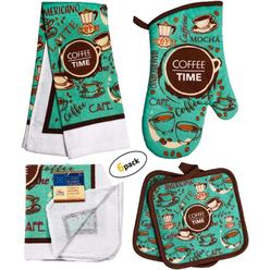 5 Piece Set Coffee Theme Kitchen Linen Set Includes One Oven Mitt Two Dish Towels And Two Pot Holders Nayancorporation Com